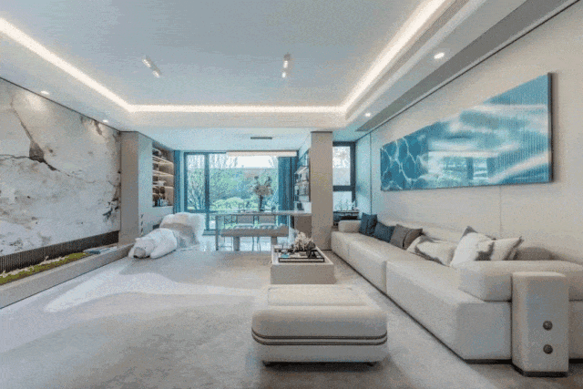 尺度震撼:宽厅面宽约5.5米,3.5开间面宽共约11.5米,再加上约8㎡的阳台,使得整个家庭的公共区域尺度感十足、功能也更加灵活多变。
