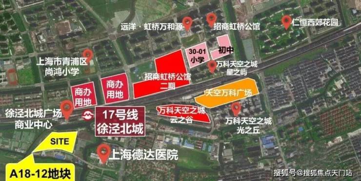 项目地块北侧紧邻17号线徐泾北城站,1站可达徐盈路天空万科广场,2站至蟠龙古镇商业区,3站直达国家会展中心,4站即达虹桥枢纽。