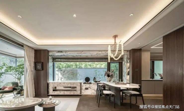 材料 选用 意大利石材,BVLGARI HOTEL大理石,铝型材塑型红, 四层金属网格 墙面以及 梧桐叶金属屏风 等, 打造独属老静安的记忆符号,高奢定制,市区豪宅调性拿捏!