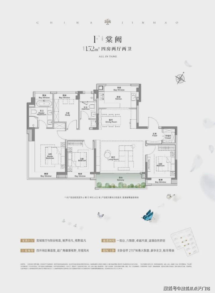 全景舱艺境美宅,标准层约3.1米层高、270度全景飘窗、LDKB一体化、南向跑道阳台、超12米南向全屏开间,无限视野尽收眼底,还有超金喜的满配精装,全上海只有央企金茂才能做得到。