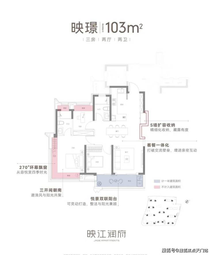 ②建面约103㎡3房2卫边套:品质改善的爆款户型,270°环幕飘窗!