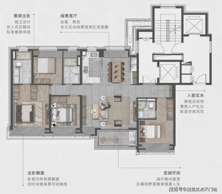 建面约155㎡奢悦四房,以双套间主卧设计,精准回应这一需求:私享主卧套间,形成互不干扰的生活圈,既能保留年轻人的社交主场,又为长辈打造专属天地,精准匹配新中产家庭的代际居住需求。南向社交宽厅,承载家庭聚会、朋友宴请、甚至孩子的生日派对,让每一份生活仪式感都有处安放。