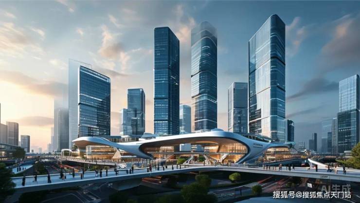 外立面:金属质感铝板与玻璃幕墙形成未来感镜面,反射云影天光;