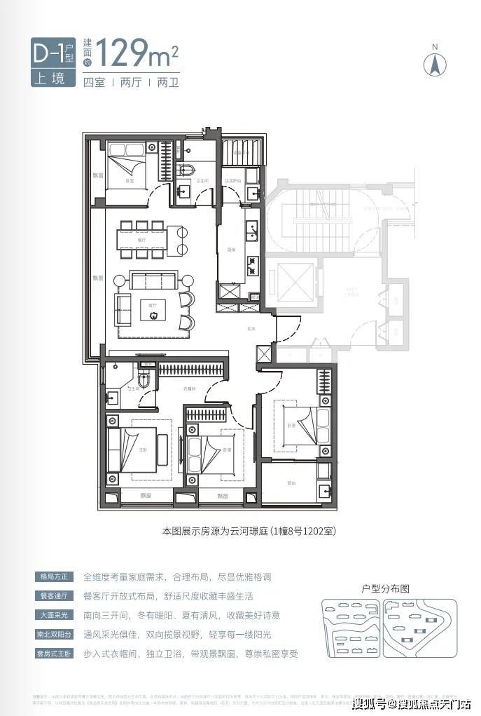 项目129平四房两厅两卫配置,功能齐全,满足终极置业需求 ;三开间朝南,向阳而居,6.1米侧厅布局,枕水而居,尽享滨水花园景观视野;开敞式书房,空间感升级,侧向飘窗,景观渗透更加充分。