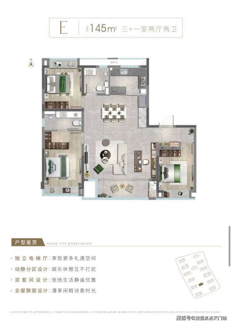 以一轴一带多境的格局,打造迎宾客厅、仪式水景、景观连廊、艺术水苑、森氧绿境、精装大堂六重归家礼序。