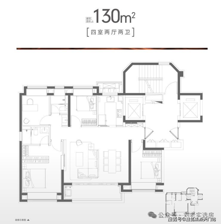 建面约130㎡的四房两厅两卫