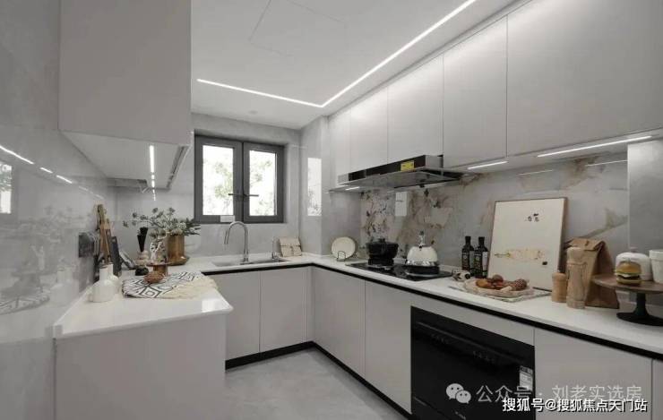 U 型开敞厨房,符合洗、切、炒、顾烹任流程,高厨房利用率。预留冰箱尺寸。