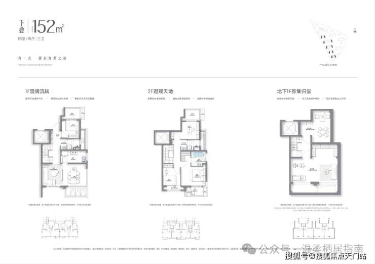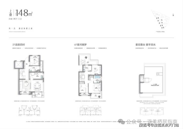 项目另有建面约95㎡ 3房户型及叠加别墅产品,叠加别墅总价约1100万级,户型图如下:
