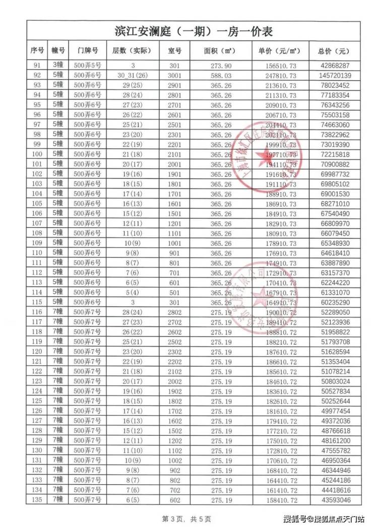 一房一价表