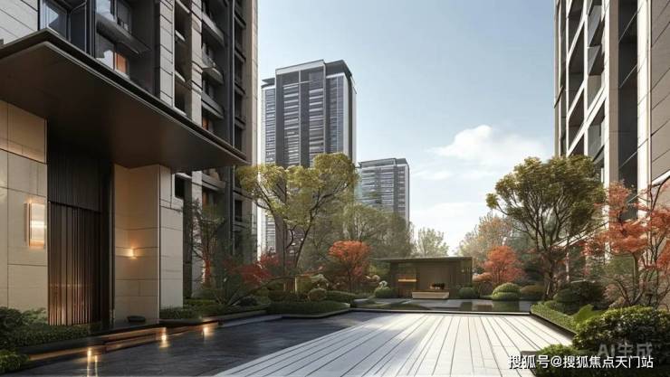 浅米色石材配深灰金属线条,坡屋顶的现代演绎——天宸雅颂的外立面像一位穿高定西装的中式文人,既有东方韵味的筋骨,又有国际化的皮相。14栋11-18层的洋房和小高层,以2.0容积率铺陈出低密社区的呼吸感,37%的绿化率如同给建筑群披了件生态披风。