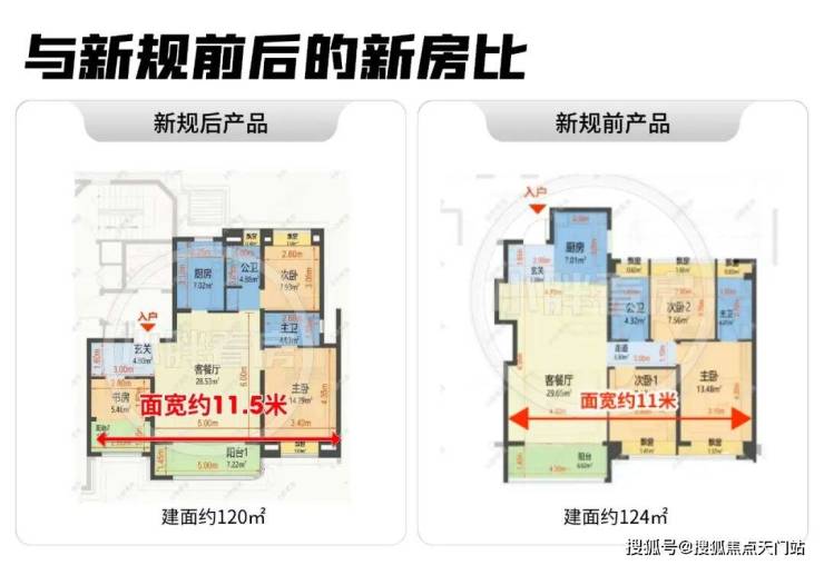 ✔对比新规前产品,120㎡段户型面宽普遍在11米上下,环宇玖章面宽优势一目了然;