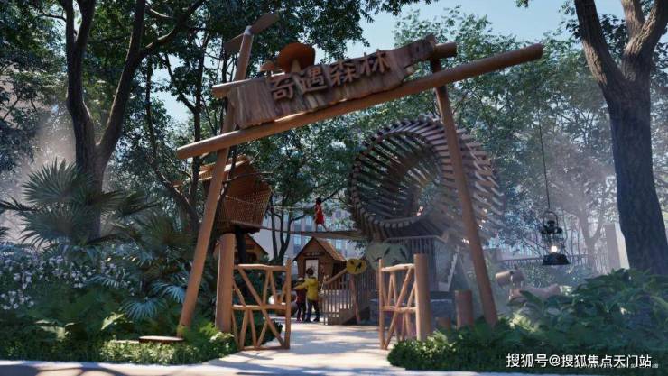 儿童乐园也被完美结合进了自然探险的主题之中,从树屋到自然客厅,有了全域驱蚊雾森系统,孩子可以在安全可控的环境中,接触原生态的自然艺术。
