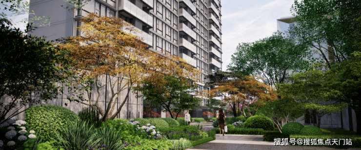 整体效果现代精致,十分符合当下年轻人的审美观;星级酒店式入户门,挑高约7米,宽约60米;石材金属线条背景墙加暖色系夜灯搭配,中庭花园水岛层叠、景墙错落,槭树青红间季节流转的温情脉脉展现,精致的水景让居住者仿若初入剧宴,感受剧目的艺术呈现……
