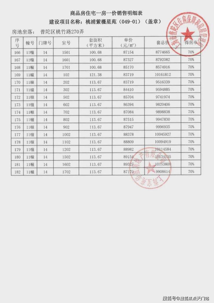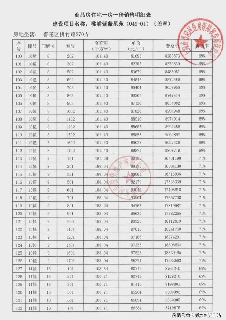 项目一房一价表▼