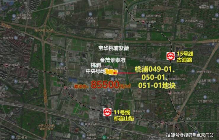 2023年8月,上海二批次土拍,宝华&东苑以总价328800万元成交普陀区桃浦科技智慧城(W06-1401单元)049-01、050-01、051-01地块,地块出让面积30126.9㎡,容积率2.5,溢价率4.05%,楼板价43655元/㎡,房地联动价85500元/㎡。