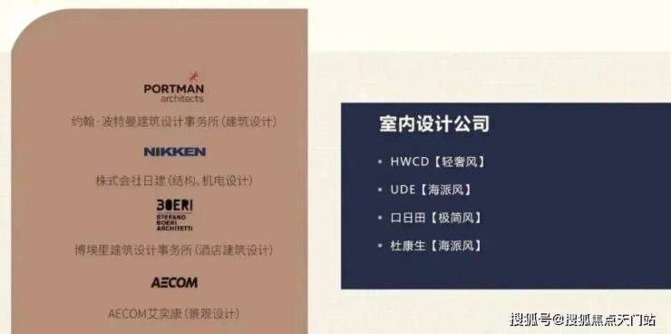项目设计方来自著名建筑事务所-Portman Architects(上海商城的缔造者),以及日本的日建设计株式会社—Nikken Sekkei和博埃里建筑设计咨询有限公司共同设计,真正的强强联合,建筑风格十分有特色:楼体形似金字塔,底层架空打造了水景大堂。整个立面与外滩华尔道夫系出同门,充满未来主义又自带经典Artdeco风格。