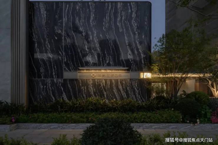 入口两边采用实体景墙与格栅形式,形成围合式院落空间,景墙前端采用奢石与金属点缀,墙面使用照壁灯有序排列,尽显奢侈度假风范。两侧阵列植物绿化,营造迎宾仪式感,凸显品质与调性。 院落内部设计采用了酒店式下落客的设计手法,中心圆形水盘聚八方之财气,寓意财源风水。圆盘水景中间选用特选造型树点缀,营造浓郁的度假氛围。配备豪华酒店式落客区的大堂设计,实现业主尊贵的归家仪式。