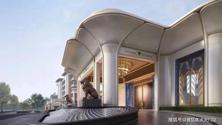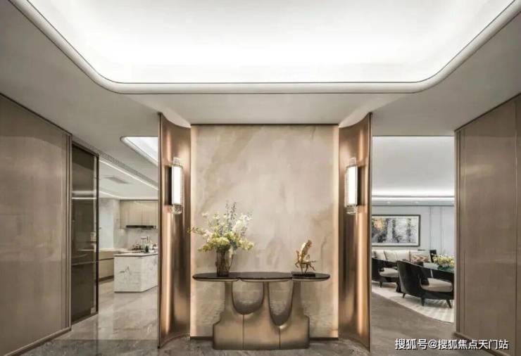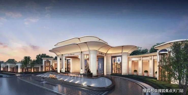 「玉兰门庭」摩登飘逸,环抱式落客前场,大师定制非遗掐丝珐琅门钹,流转温润光华,敬呈归家尊崇礼序,自此启幕生活的华贵序章。