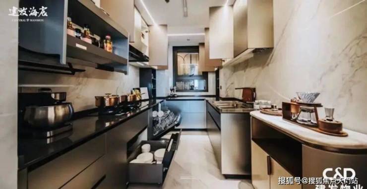 该户型厨电五件套选用“厨电界的劳斯莱斯”——嘉格纳。智能马桶、台盆、浴缸选自“世界顶级三劳”之一的劳芬,更集齐大金中央空调、地暖两联供、霍尼韦尔全热交换新风、骊住原装进口多功能水槽,YKK三玻两腔系统窗、华为鸿蒙智家系统等高规奢装,与市面上单价18万/㎡朝上的顶豪看齐!