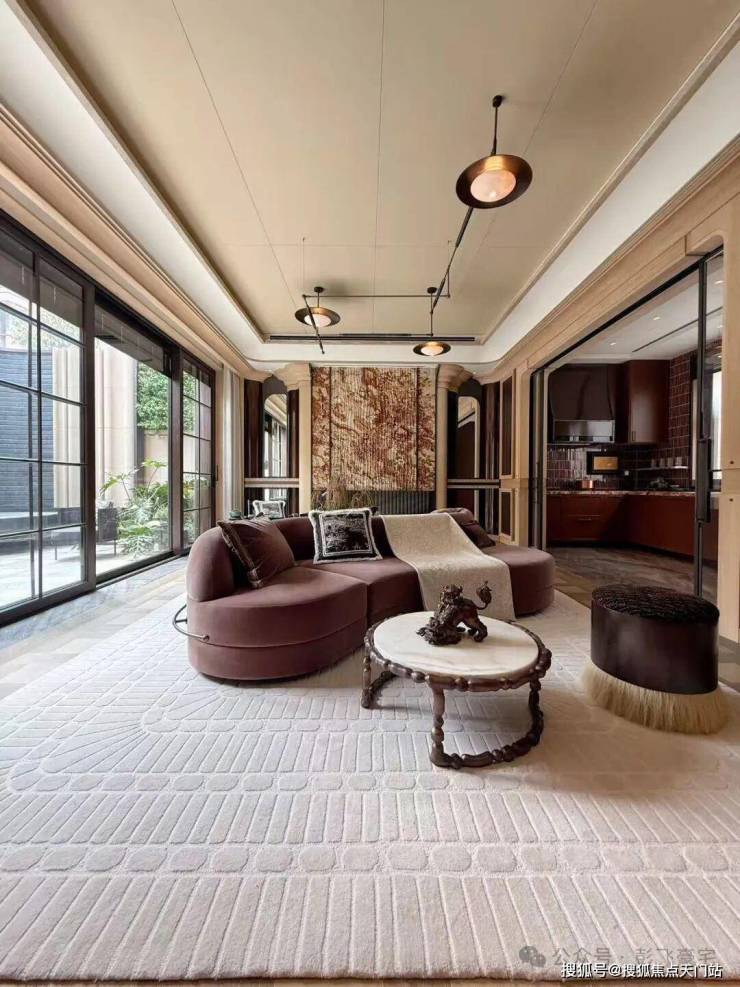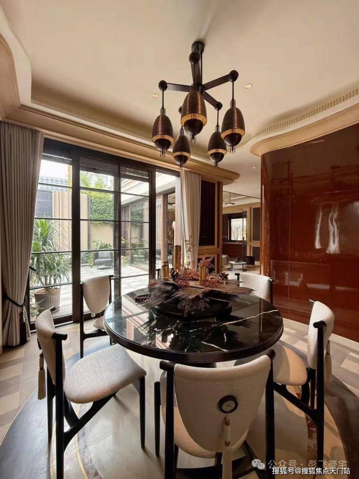意大利金钻、复古红洞石等,铺陈风貌别墅的厚重质感;手工捶打铜门,每一道锤纹,都是手工匠人的心血。邻里两户双重墙体设计,保障各自的私密与尊崇。