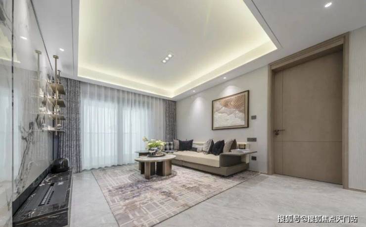 金茂定制壁布/墙纸:结合 芬迪白岩板打造的客厅背景墙,营造独特的归家氛围。