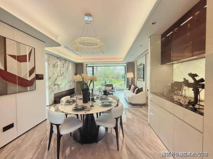 中环铂樾客餐厅一体化设计,远超同类面积标准的大尺度餐厅,不仅放得下圆形大餐桌,旁边还配备了餐边柜!剩余空间依然阔绰从容!