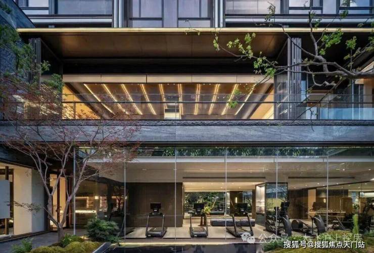 地下区域的健身房直面庭院景观,每台跑步机都正对玻璃中轴,满足"强迫症"用户的极致体验;