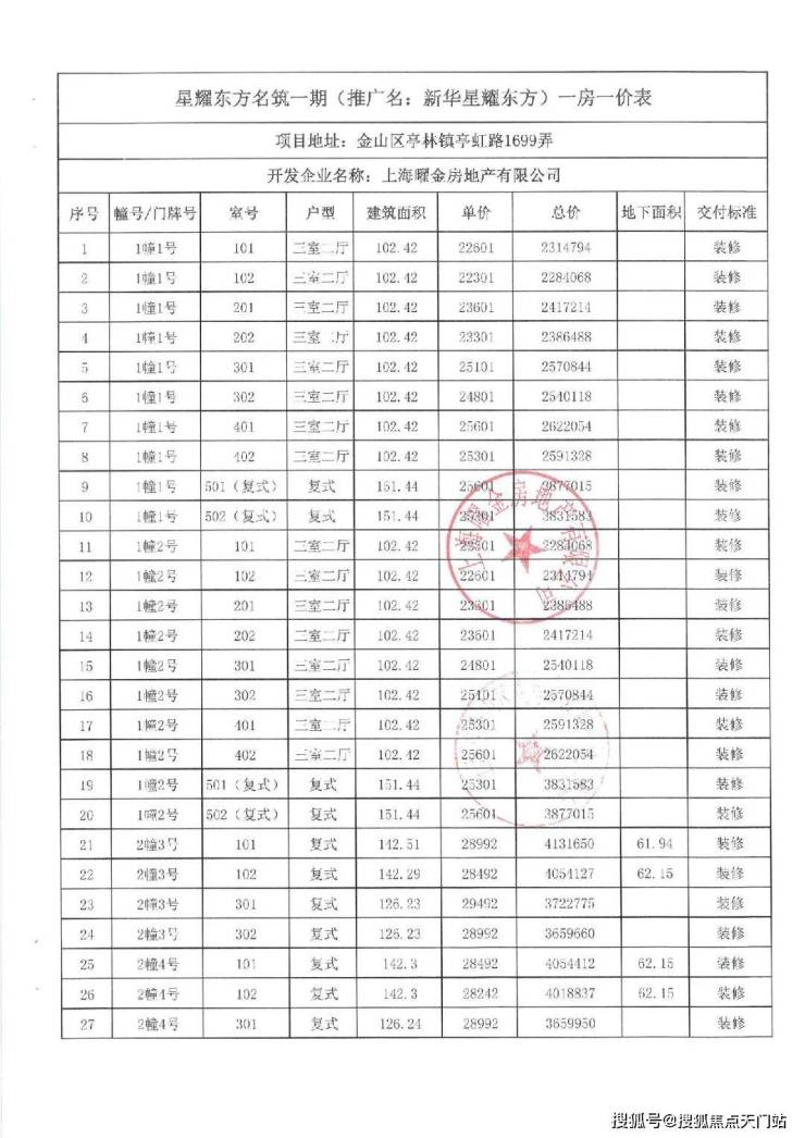 项目一房一价表