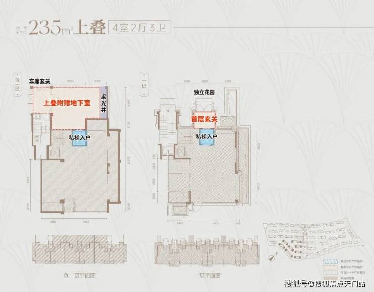 · 尊贵私密入户: 上下叠均私享入户花园,独门独户,私家电梯入户;
