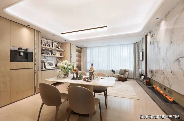 【约102㎡样板间】三房两厅两卫格局,同样的布局设计巧思应用于102㎡,打造出近乎双套房的生活体验。5米面宽横厅设计,营造极致通透感,臻选奢石融入空间,优雅时尚。厨房科学动线设计,搭配国际品牌五金和厨电,悦享精致烹饪时刻。星级主卧,独立卫浴,将空间最大程度延伸,打造舒居体验。