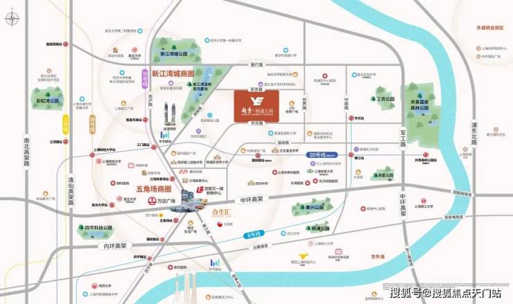 越秀长海社区项目位于杨浦五角场板块,五角场,因五条发散型大道的交汇处而得名。