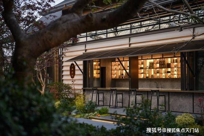 第三景绿波廊下:这里是一个半开放式的吧台空间,开窗与中庭大树遥相对应,树影青葱,清风摇曳,享受悠闲风雅。