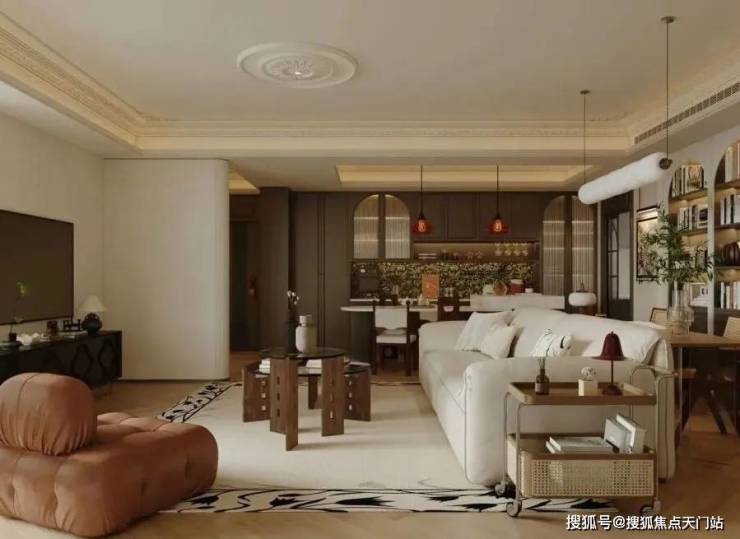 户内楼面高度不一致,错开之处有楼梯联系。但没有完全分为两层。(适合大面积住宅,小户型会显得局促)