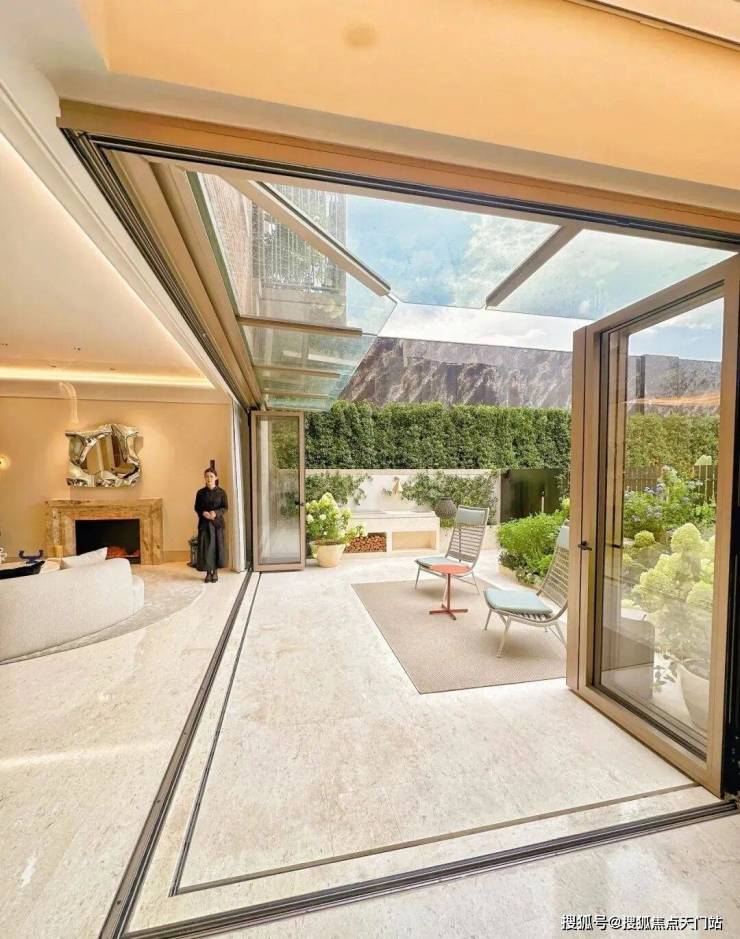 这个270°的转角玻璃是可以打开的,打开后花园与室内空间无界相连,让居者与自然的“无间亲密"重新回归。