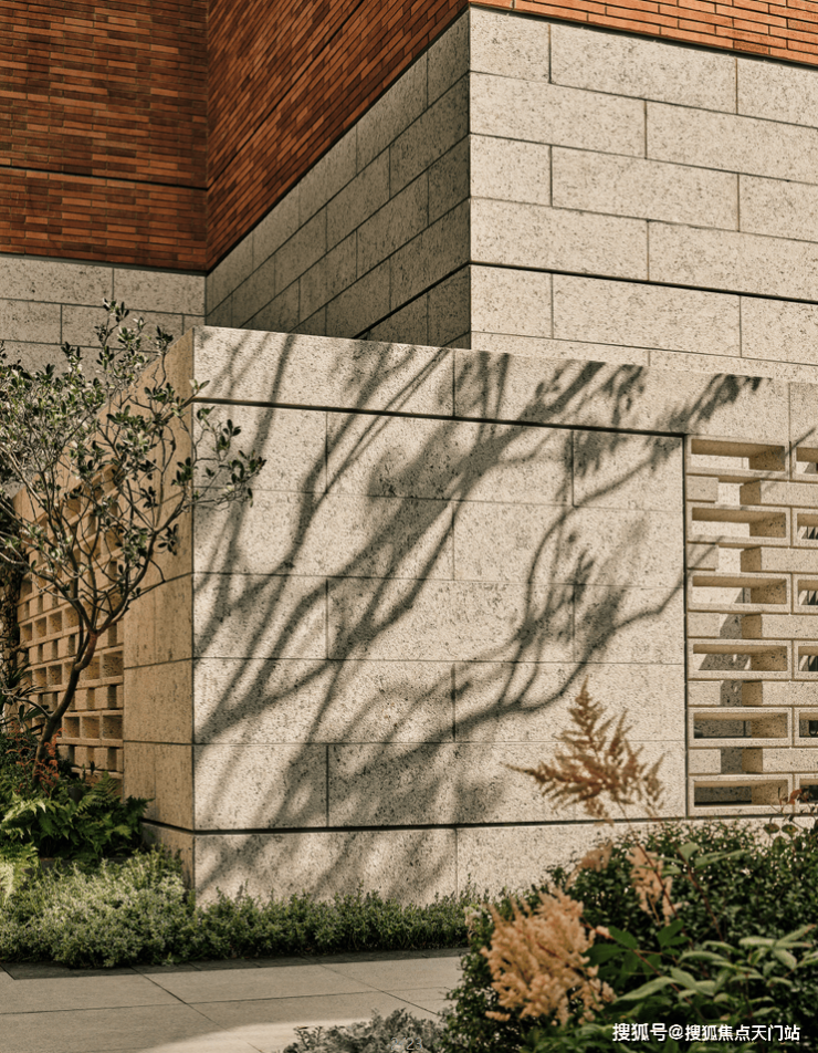 每一处细节都可以看出翠湖滨江的极尽用心——精巧的红砖镂空景墙、房檐上隐约可见的山茶花雕花、极具海派韵味的石库门、石材斜切面的窗套。