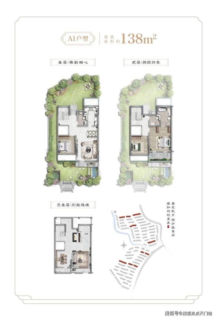 项目二期为纯别墅产品,社区容积率约0.41,面积段约为138-455㎡之间不等,不仅延续了一期多重景观结构,出市入室的仪式感满满,更是提升为围合式院落结构,增加了转角街巷之间的景观点,细节之处尽显大宅风范和业主的雍容气度。除常规的有天有地之外,还配有超高层高地下室及露台。