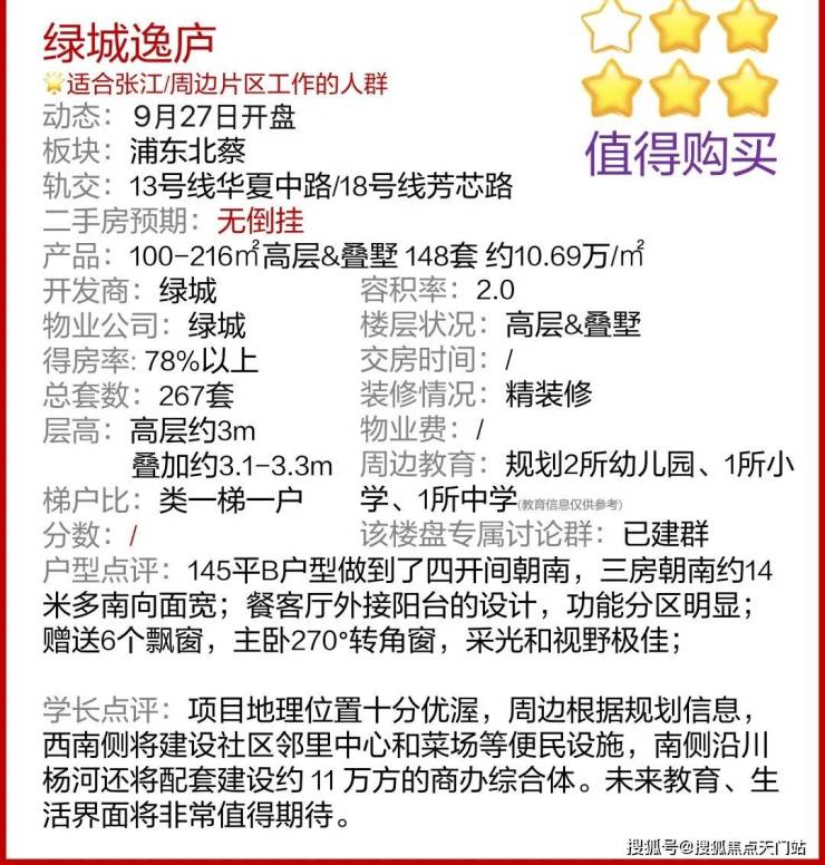 地段上:都知道张江作为浦东的产业老大,拥有科创霸主的地位,但职住失衡,板块内已无新房供应。张江每年持续吸引大量的高知、高收入人才,这些人的高端居住需求亟需得到满足。