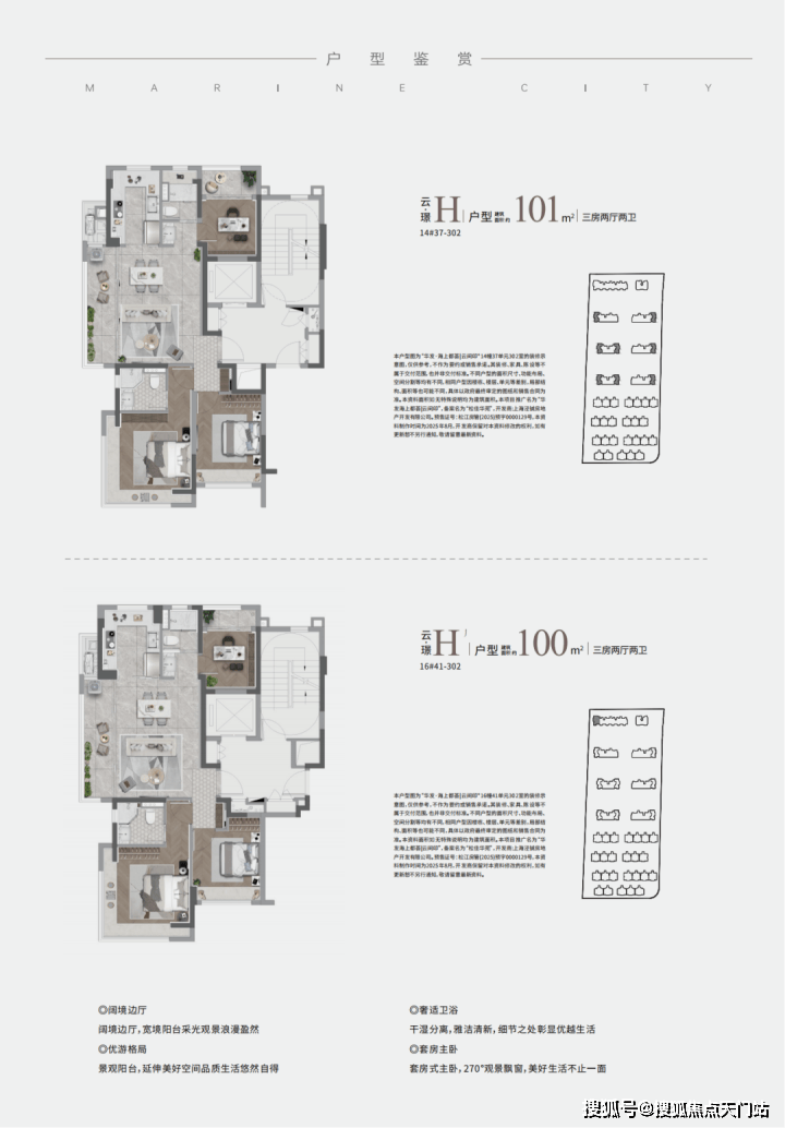但是在华发海上都荟,建面约101㎡户型南向2个大阳台做到了 惊人的约12㎡!
