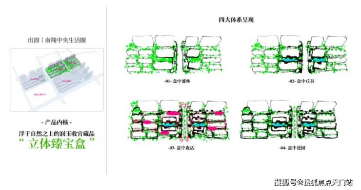 继续往里走,映入眼帘的是二期园林景观——绿野仙踪。它拥有 5重立体园林、3大组团、7大森境花园, 精心规划了盒中谧林、盒中丘谷、盒中花园、盒中森活等四大园林体系,仿佛一个 蓝绿臻宝盒。