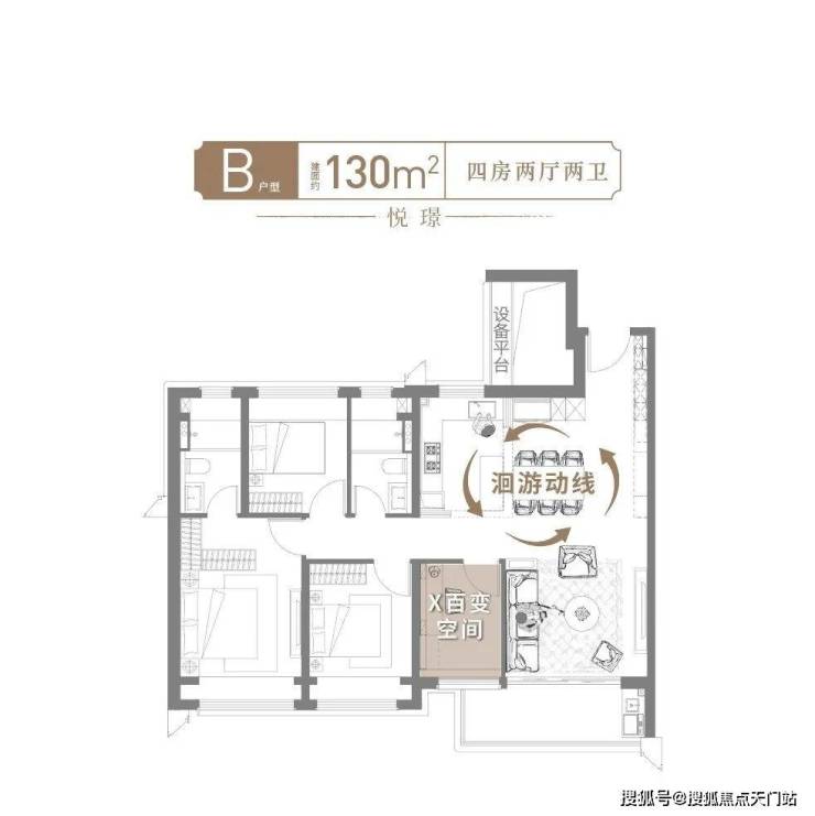 全景面宽+无界通厅+高附加值+收纳天花板,130㎡的面积直逼140㎡的尺度感!