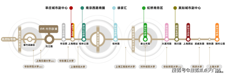 交通能级越高,地段价值越大,被称为西部大动脉的15号线,自北向南串联3大科创园区、9所高校。从项目出发前往 15号线元江路站, 真正的步行可至,当你亲自用脚丈量之后更有切身体验。 5站徐汇、9站上海南站、12站漕河泾,还可换乘1/2/3/7/13号线等,扼守城市发展的咽喉。
