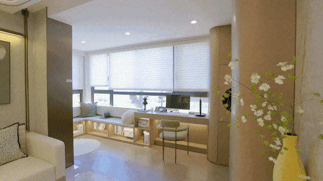 试想一下,当窗外的水系在缓缓移动,国际住宅定格在落地窗前,公园里的树影婆娑,站在落地窗前的你,心跳是不是也跟着停顿了几秒?