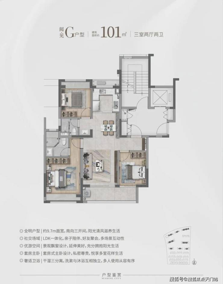 建面约101㎡3房2卫&
