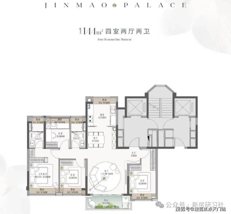 项目推出建面约114、126、144㎡3-4房,偏改善,满足不同家庭需求。
