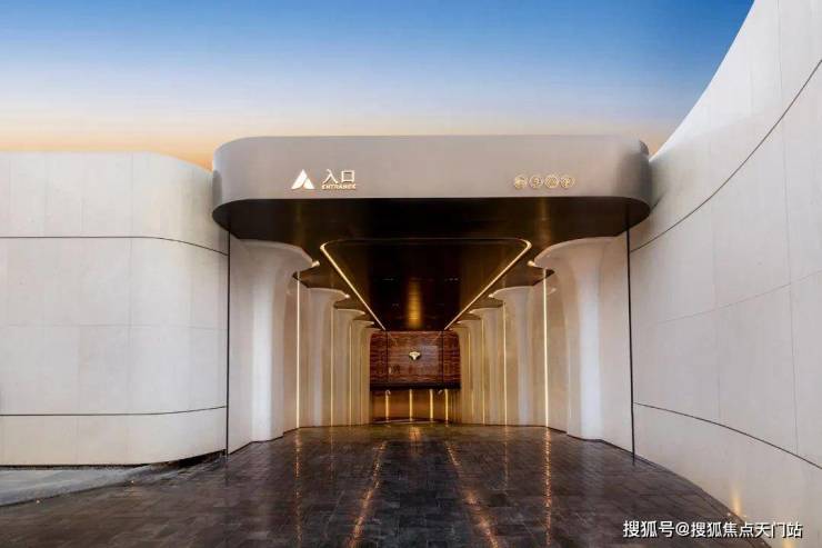 门庭外,两侧辅以具有仪式感的跳泉水景,将建筑的圆弧美感与自然水景相合,共同构成海上·清和玺“贵雅清和”的城市界面。