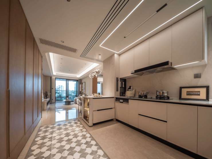 通过S墙的设计,既优化了餐厨动线,同时也增大了厨房的作业面,让整体空间得到进一步合理利用。