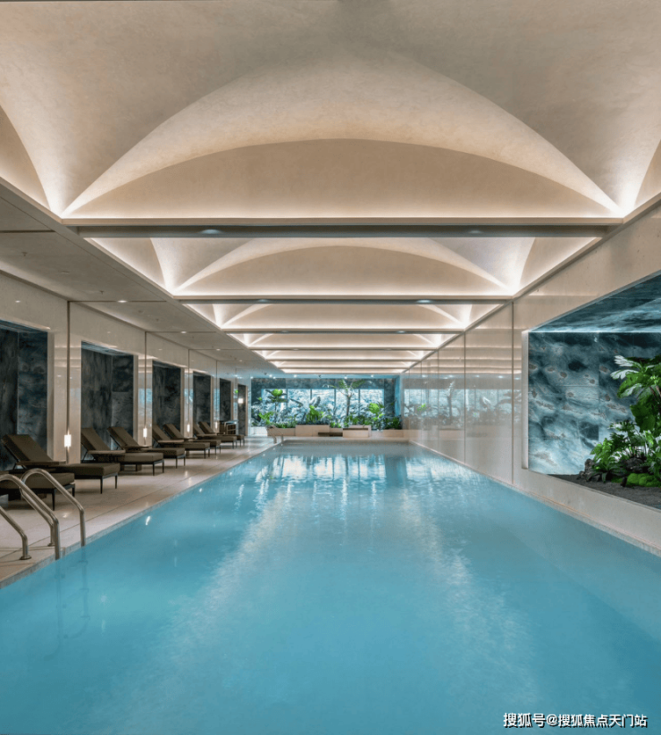 由大师琚宾操刀设计,涵盖植物园泳池、艺术会客厅、女性专属健身房等场景。平时想约朋友喝个茶、谈个事,不用出小区就能搞定,每一处场景都折射出塔尖生活的仪式感。