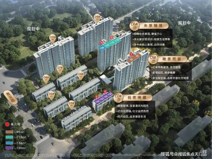 社区内部围绕叠墅区、小高层区以及高层区,打造三大主题花园中庭。