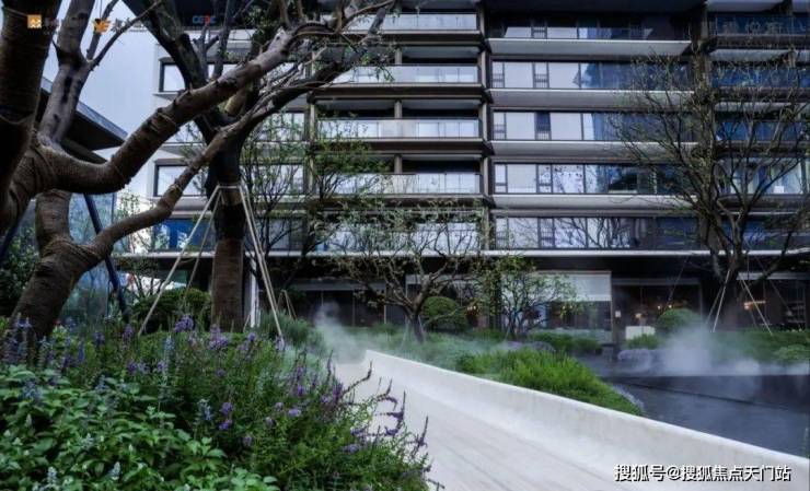 水晶景观庭院在动与静之间,细节到了流水、园林里,值得一提的是 ,庭院里的水,并不是静态,而是有涟漪的流动,同时为了保证低区业主不被流水声音干扰,特意做了“静音水”。这一现象的背后,是1300多块安哥拉石材的切割与拼接,完全是把细节拉满。