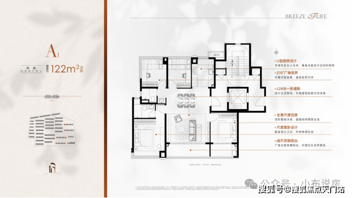 预计总价500万级即可上车的王炸级洋房户型,三批次同步将热势加推!建面约122m²4房2厅2卫墅境洋房,3+1飞机户型,客厅开间约8m,LDKB一体化设计,以餐厅为中轴的生活交流动线,平衡生活的意趣与从容的格调;双联阳台的突破创新式设计,让整体阳台面宽突破到约8.2m;全屋搭配控制面板,一键触控智能窗帘、灯光控制及空调、地暖、新风三大件,厨房配备老板13件套烹调、洁具,全屋科勒卫浴品牌,臻席洋房最后上车机会手慢无!